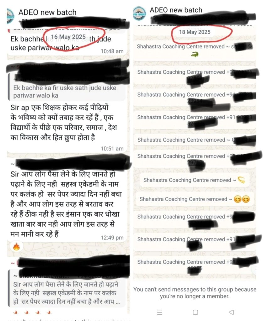 बता दे कि अभी 15 जून 2025 को छत्तीसगढ़ व्यापम के द्वारा ADEO (सहायक विकास विस्तार अधिकारी) परीक्षा होना है। और ऐसे वक्त पे कोचिंग का ये रवैया निंदनीय है।