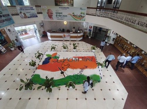 बिलासपुर मुख्यालय में स्वच्छता संदेश देने और कर्मचारियों को प्रेरित करने के लिए आकर्षक रंगोली भी बनाई गई।