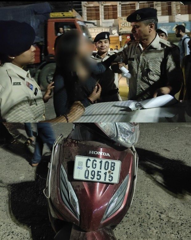 इसी दौरान रात करीब 10:30 बजे महाराणा प्रताप चौक की ओर से आ रही एक युवती, जो होंडा एक्टिवा (CG10BQ9515) चला रही थी, पुलिस जांच से बचने की कोशिश में तेजी से आगे बढ़ी, लेकिन कुछ दूरी पर ही अनियंत्रित होकर गिर गई। मौके पर पहुंची महिला पुलिसकर्मियों ने जब उसे संभाला, तो उसके नशे में होने का संदेह हुआ।
